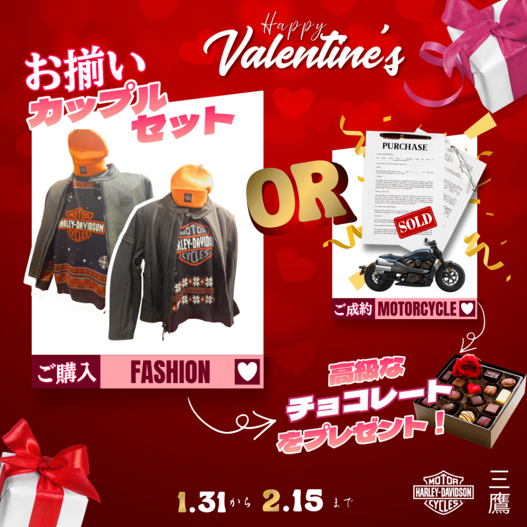 ハーレーダビッドソン三鷹で、2月15日までバレンタインフェア開催中!
